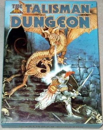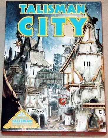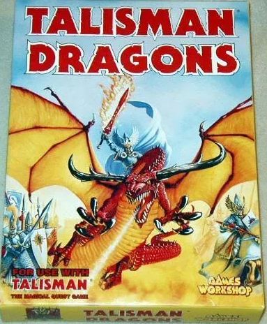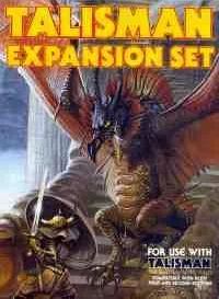 La segunda edición vino acompañada de expansiones para el juego. En 1986 salió Talisman Expansion Set y Talisman the Adventure. Estas expansiones añadían nuevas reglas, nuevas cartas (por ejemplo de localización o de hechizo), nuevos personajes, incluso reglas para jugar más jugadores. Talisman Dungeon (1987) añadía una mazmorra al lado del tablero (con más casillas, más eventos y más mazmorreo para ir saqueando). La siguiente expansión, de 1988, era Talisman Timescape. Esta caja nueva en teoría introducía «seres de otras eras» (no fantástico) pero era básicamente para jugar en el cuadragésimo primer milenio; tenía un nuevo tablero, un montón de cartas nuevas, y ocho personajes (Astrópata, Guerrero con Sierra Mecánica -un guiño a Chainsaw Warrior, un juego del que igual hablamos otro día), Astronauta, Pirata, Cyborg, Marine Espacial, Arqueólogo y Científico. Podría haber sido un juego separado, pero no lo era, necesitabas el juego original. Talisman City (1989) fue el siguiente suplemento en aparecer, y como Dungeon, añadía un tablero al lado del tablero principal donde encontrábamos más casillas, más objetos, más … de todo. El juego parecía medio muerto, pero en 1993 hubo una última ampliación, Talisman Dragons, que tenía más héroes, más objetos y más bichos, todo ello relacionado con los dragones (y sí, la ilustración es la típica de los elfos que se ha usado tantísimas veces). Creo (pero no tengo pruebas) que hicieron esta caja más pensando en «tomar la temperatura» y ver si aún había demanda de Talismán, que otra cosa (cuatro años sin suplementos es mucho tiempo).