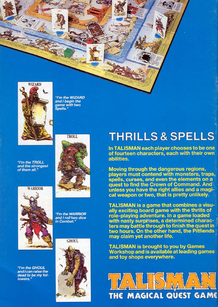 En la White Dwarf 62 (Febrero de 1985), en la contraportada, aparecía Talisman anunciado en lo que era una «segunda edición» del juego (más bien una primera edición revisada).