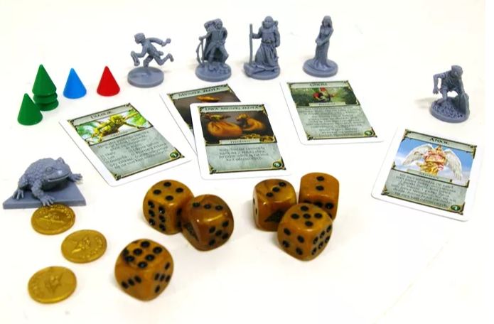 A ver. Talisman es un juego bastante facilito. Ponen 13+, pero de verdad que mi hija de 9 juega sin problemas. Pero por si acaso queréis algo más ligero para vuestros retoños, sí, existe Talisman Cuentos Legendarios (Talisman Legendary Tales), un juego de mesa cooperativo que …. bueno. Pone Talisman y te pueden convertir en rana, sí. Pero es un juego muy muy muy pero que muy sencillote, que recuerda ligeramente al Talisman pero que ni hay tablero en tres zonas, ni cartas. Lo dicho, si vuestros descendientes ya dicen six seeveeen por ahí, pueden jugar al juego base, si son (mucho) más pequeños igual este Cuentos Legendarios es una buena opción para jugar media horita y podéis encontrarlo a buen precio.