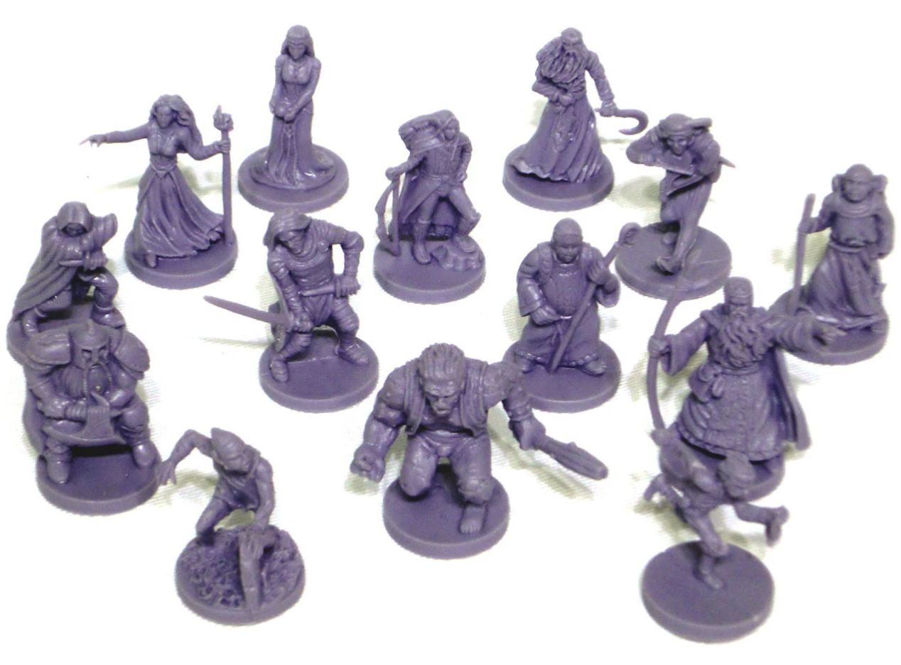 Esta edición era, además, la primera que incluía miniaturas en su juego base. Como hemos visto, en segunda edición podías comprar miniaturas de metal para los héroes; aquí se incluían. Se hizo «limpieza» de los seres que no encajaban en el trasfondo de Warhammer Fantasy, y la hoja de personajes era ligeramente más rolera (recordad que Heroquest había roto los esquemas cinco años antes). Estas miniaturas luego estuvieron disponibles en las cajas de juguetes por ejemplo. Había un bárbaro (más bien un norse), un enano, un fanático (sí, sí, fanático), un caballero templario, un minotauro, un explorador, un skaven, un espadachín, un guerrero (parecido al bárbaro de Heroquest), un hechicero y un elfo silvano. Todas ellas de plástico.