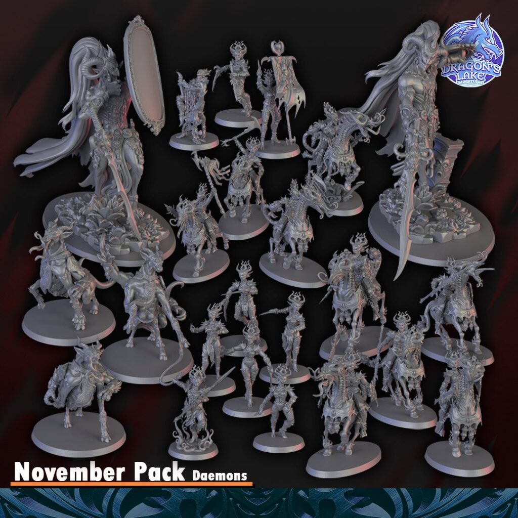 Ya sabéis que a inicios de mes nos hacemos eco de algunos Patreon que considero interesantes, y uno de ellos es el de Dragon’s Lake, que siguen con su Patreon (9€+IVA). Ya sabéis, aportas dinero para que sigan esculpiendo miniaturas, a cambio te dan los STL que luego venderán en su tienda online (o miniaturas en su página web ya impresas). Por si queda algún despistado, son miniaturas diseñadas para The Ninth Age, pero la gran mayoría son útiles en cualquier otro juego de fantasía (especialmente Warhammer / The Old World) y, siendo Demonios, también válidos para Age of Sigmar o para Warhammer 40.000. Necesitas una impresora 3D de resina para poder imprimirte estas miniaturas en casa (hay tiendas que ofrecen servicio de impresión si les llevas tú los STL).