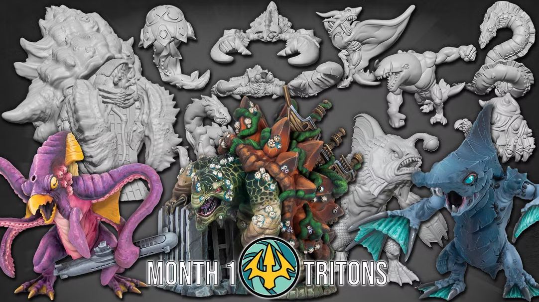 Y es que, este mes, además del lógico y esperado welcome pack con siete miniaturas (no es mucho, la verdad), incluyen la primera facción, los Tritones (a Tralarero Tralará le gusta esto) con tres monstruos, ocho unidades y un edificio. Me gustaría pensar que cada mes darán una facción entera (o media…) para poder ir jugando (que yo recuerde había más de 20 facciones), y supongo que serán listos y el siguiente mes será faccion distinta y no más krakens. Pero igual ya es demasiado tarde…