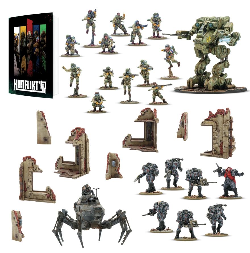 Hay juegos que, por mala publicidad, por mala suerte, o por diversos factores, no han conseguido el éxito que merecían. Konflikt ’47, de Warlord Games, es uno de esos juegos. Basado en el buenísimo motor de Bolt Action, este juego introduce el dieselpunk en la Segunda Guerra Mundial, con mechas luchando junto a zombis, hombres oso, armaduras estilo Iron Man y robots con bombín.