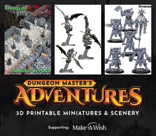 Post breve pero intenso. Nueva «oferta» de Humble Bundle llamada Dungeon Master’s Adventures con más de 300 STL’s. Como su nombre indica, está orientado al mazmorreo. Quizá lo más interesante sea este set de STL’s para imprimirte tus propias mazmorras, con las puertas y paredes. Pero este Humble Bundle tiene mucho, mucho más. Desde héroes a demonios pasando por perretes, orcos, dragones, colinas, muebles de mazmorras, una torre de dados calavera, y escenografía que personalmente me recuerda mucho la de 40k.