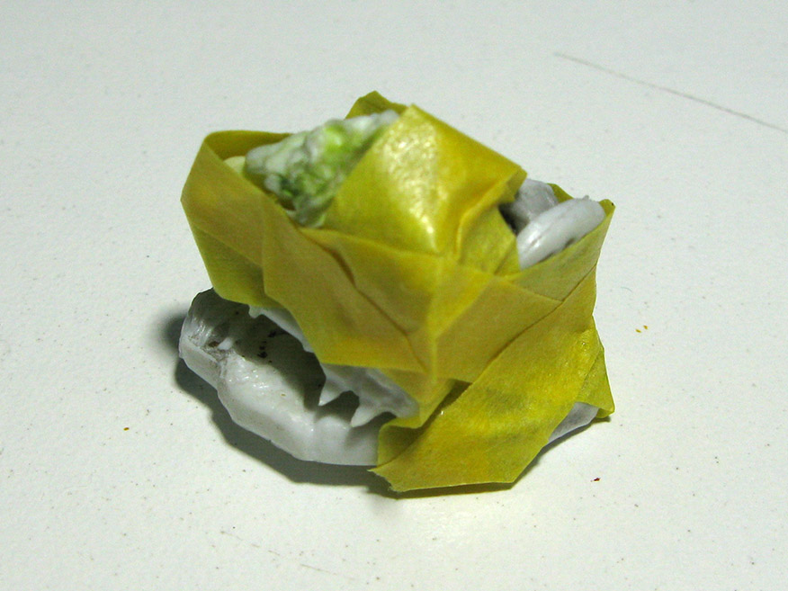 Pasados unos días, liberé la miniatura de sus ataduras, y éste es el resultado: