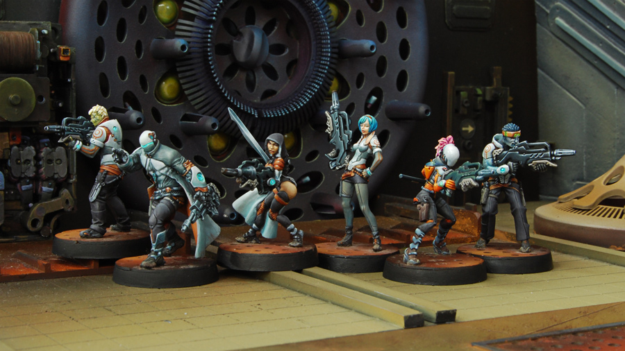 A nivel de enlace, como se ha comentado, son un enlace caro en el que si quieres conseguir todas las ventajas (máximos modificadores, armas pesadas, especialista) se te pueden ir más de dos terceras partes de los puntos de la lista (jugando a 300 puntos). Como casi todos los enlaces de Infanterías Medias son lentas (10/5) con lo cual, si quieres avanzar con ellas, posicionarlas correctamente es difícil y consume muchas órdenes (no es lo mismo mover una figura sola que 5). y en medio de la mesa es donde estas chicas sufren mucho, no ya por los visores si no por las armas de plantilla directa que impactan automáticamente. Que una figura de 5 puntos se lleve por delante dos tercios de tu lista hace que te lo pienses mucho antes de incluirlas.