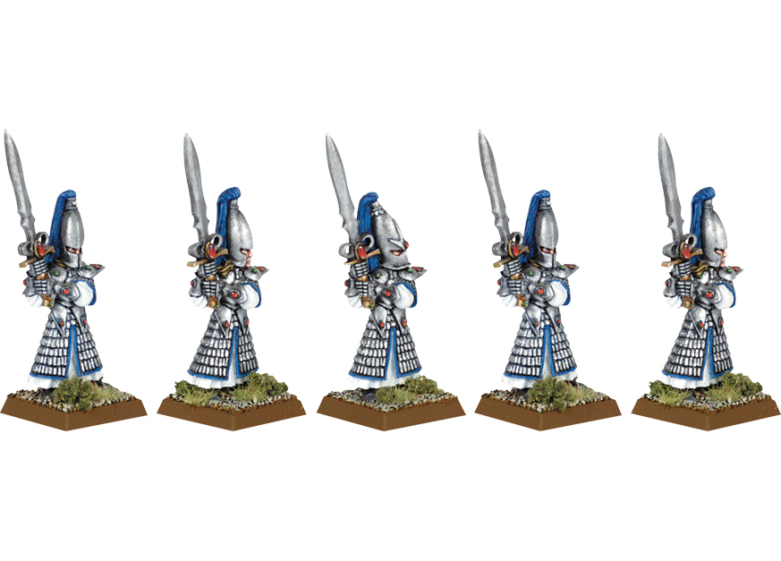 • Especial: 10 Maestros de la Espada de Hoeth (IS) con músico y campeón. 150 puntos. Apoyo cercano consistente (frontal de 16 ataques HA5 F5).