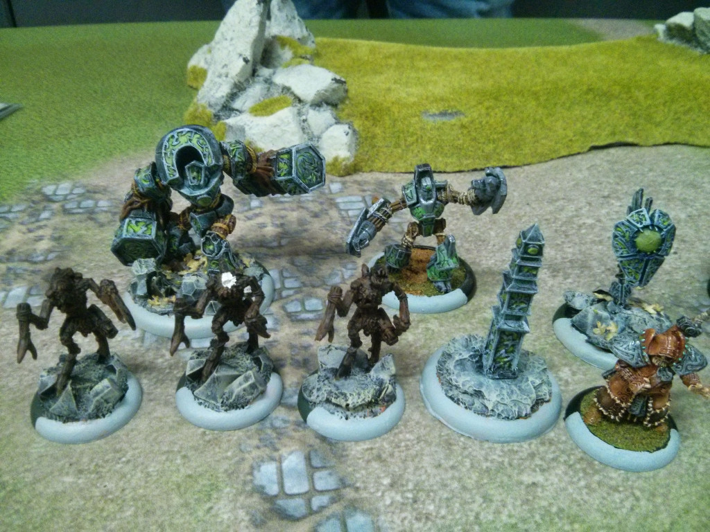 El último viernes pude jugar con Namarie mi primera partida de Warmachine. Tengo las miniaturas desde hace años (el primer starter Khador) pero nunca había tenido tiempo o la oportunidad de jugar. Así que estuve muy contento de enfrentarme a las bestias rocosas de Namarie.