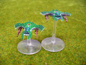 Las últimas formaciones de apoyo de disparo son las temibles aeronaves de los Eldars. Los Fénix, Nightwing y Vampires tienen habilidades que te permitirán dominar la lucha en los cielos, incluyendo un temible arsenal que puede afectar a unidades en tierra y a aeronaves con idéntica eficacia. A mí me parece que ningún ejército Eldar está completo sin su Vampire de rigor. Las otras aeronaves se ven menos, también porque son carísimas y hay otras tropas que “llenan” más la lista de ejército.
