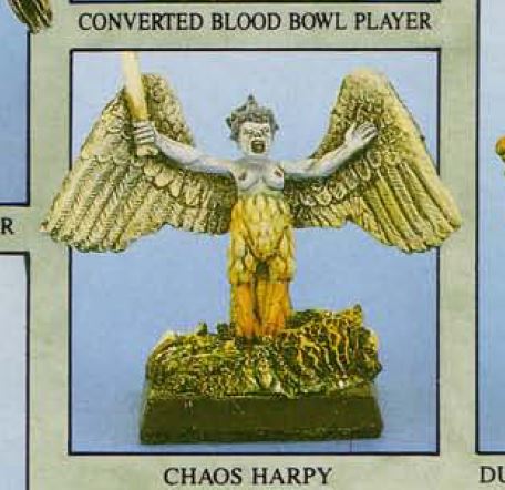 Para terminar Tercera, os paso un recorte de una White Dwarf, «Arpía del Caos», de 1989, pero no sé si se trata de una conversión o qué.