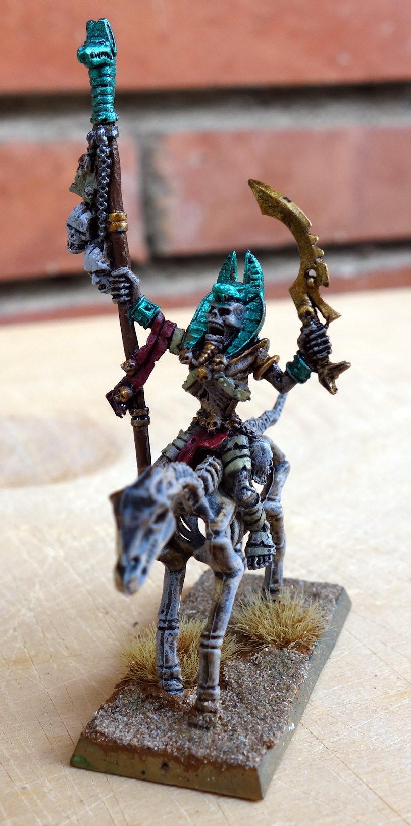 Pues yo me estoy haciendo este ejército a base de minis de segunda mano. Conseguí la caja de batallón completa, tengo 11 guardias del sepulcro, el lanzacraneos, príncipe en carro y 3 carros extra. Lo difícil va a ser llegar a 20 del sepulcro y conseguir ushabtis pero bueno, poco a poco!