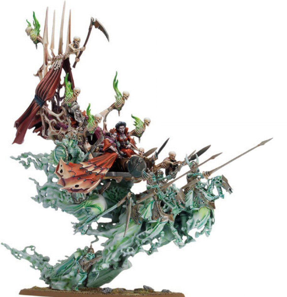 Se trata de la primera unidad que puede sumar filas con la regla especial etéreo, que junto con su capacidad de causar Terror puede ser motivo de abuso con unidades excepcionalmente grandes. Por ello proponemos un cambio en el tamaño de unidad. Para acercar a los jinetes a los espectros de sexta edición también proponemos disminuir algunos stats secundarios. Finalmente, tras comprobar repetidamente que esta unidad es un auténtico “must have” (sin duda debido a que lo hace todo bien: mueve bien, es defensiva, ataca bien y causa terror), nos hemos visto obligados a reflexionar y hemos decidido proponer que se le elimine la regla especial terror. Esa regla especial es impropia en sexta edición de unidades especiales y añade una faceta innecesaria a una unidad ya de por si muy buena.