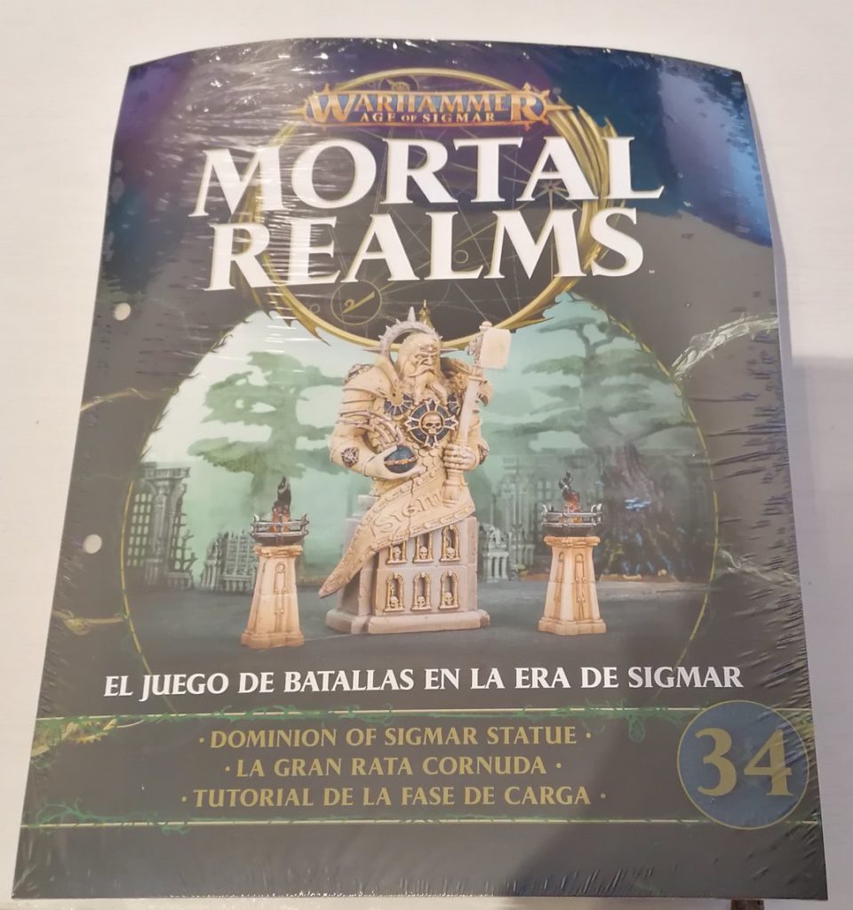 Hoy vamos a abrir el número 34 del Mortal Realms. En este enlace podéis consultar (rumores) el contenido de la colección del 1 al 50, y en estos enlaces está mi opinión sobre los números 1, 2, 3, 4, 5, 6, 7, 8, 9, 10, 11, 12, 13, 14, 15, 16, 17, 18, 19, 20, 21, 22, 23, 24, 25, 26, 27, 28, 29, 30, 31 y 32 y 33, así como el contenido premium de la entrega 8 (Necrófagos / Flesh-Eater Courts) y el regalo especial de «compensación».