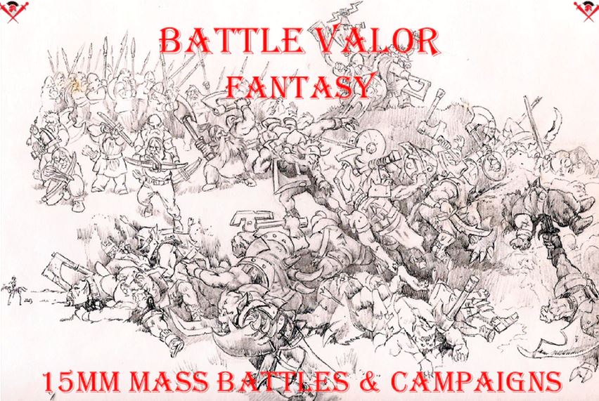 Sí, otro crowdfunding más (parece que salen como las setas… claro, al ser otoño…). En este caso es algo distinto, al menos en cuanto a escala: Battle Valor Fantasy. Se trata de una campaña para sacar miniaturas de fantasía de 15mm y un reglamento para batallas (y campañas) masivas. De los 10.000$ que pedían aún les quedan casi 4.000 a falta de 11 días, por lo que no será fácil conseguirlo. El reglamento lo tenéis en PDF gratis en su web, por si os hace gracia probar un juego a 15mm. La «configurabilidad» de las tropas (palabro que me acabo de inventar) es bastante alta, me ha recordado a los juegos de Osprey.