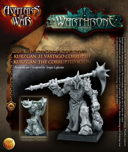Para las Huestes del Apocalipsis, llega Kurz’Gan, el Vástago Corrupto, esculpido por Sergio Lafuente. Muy pronto añadiremos las reglas para poder usar este nuevo personaje en Warthrone. Más detalles sobre esta miniatura aquí.
