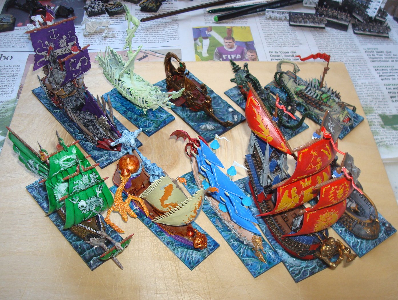¿Recordáis que hace tiempo me propuse cuatro objetivos para este año? (bueno, eran más, pero…). Pintar todo un ejército de Warmaster (conseguido en Septiembre), pintar todo lo que tenía de Battle of Five Armies, terminar de una vez el ejército de Condes Vampiro de Warhammer y pintar todos los barcos de Dreadfleet. Pues bien, he terminado el segundo 🙂 este mes he pintado el último barco (el Pez Espada), además de los siete auxiliares «estándar» (y estoy a punto de terminar los dos monstruos que me quedaban). Para la Escalada no conté con pintar la escenografía (cosa que está pintando por cierto mi señora), por lo que (aunque me falten dos monstruos, que pintaré estos días) doy por cumplido mi segundo objetivo. Ahora quedan BOFA y WH… ¿lo conseguiré?